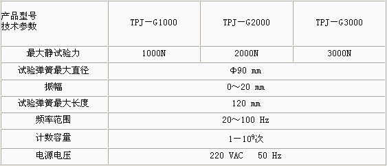 產(chǎn)品概述: TPJ-G系列彈簧高頻疲勞試驗(yàn)機(jī)采用電磁激勵(lì)、試件(彈簧)共振原理,煙臺(tái)彈簧試驗(yàn)機(jī)價(jià)格,系統(tǒng)自動(dòng)處于最佳諧振狀態(tài),青島彈簧試驗(yàn)機(jī)廠家,勿需調(diào)整,起動(dòng)一觸即發(fā),彈簧測(cè)試儀,性能穩(wěn)定可靠。操作簡(jiǎn)單,操作人員勿需培訓(xùn)。 功能特點(diǎn): 試驗(yàn)機(jī)設(shè)有振動(dòng)次數(shù)及頻率的數(shù)字顯示及次數(shù)預(yù)置、記憶等功能。該機(jī)既可以做單對(duì)彈簧的試驗(yàn),也可做多對(duì)彈簧的試驗(yàn)機(jī)。 技術(shù)參數(shù):