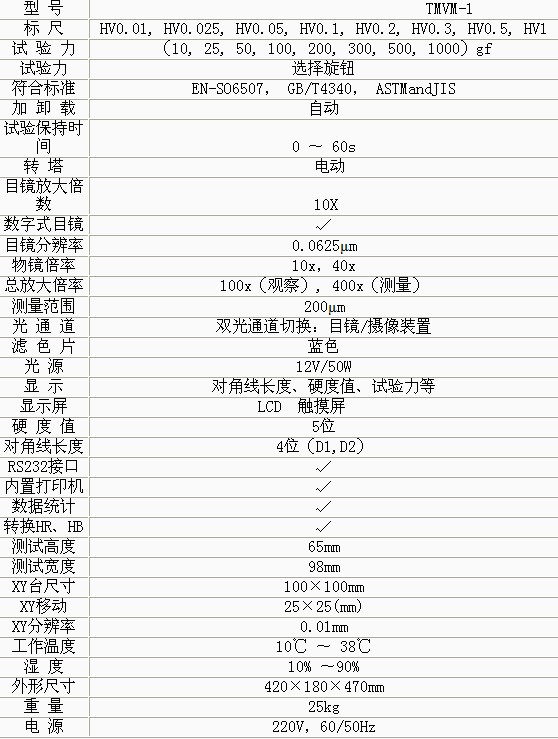 產(chǎn)品概述: • TMVM-1觸摸屏顯微維氏硬度計(jì)硬度計(jì)儀器在機(jī)械上采用精密的設(shè)計(jì),威海維氏硬度計(jì),在電氣上由CPU控制試驗(yàn)過程,顯微維氏硬度計(jì),在光學(xué)上采用高清晰光學(xué)測量系統(tǒng)、光電傳感等新技術(shù)。 • 適用于測量微小、薄形試件、表面滲鍍處理后的零件和對瑪瑙、玻璃、陶瓷等脆性材料的顯微和努氏硬度的測定 以及涂層、表面覆層、層壓金屬、熱處理碳化層和淬火硬化層的深度與硬度梯度的測定。是科研機(jī)構(gòu)、工廠及質(zhì)檢部門進(jìn)行研究和檢測的理想的硬度測試儀器。 功能特點(diǎn): • 操作由面板上的觸摸鍵輸入,維氏硬度計(jì)算,能預(yù)置試驗(yàn)力保荷時(shí)間、選擇維氏或努氏試驗(yàn)方法、調(diào)節(jié)測量光源的強(qiáng)弱等功能。 • 在LCD液屏上顯示測量壓痕長度、硬度值、測量次數(shù)、轉(zhuǎn)換值等,維氏硬度計(jì) TIME,并通過打印機(jī)輸出,dhv 1000維氏硬度計(jì),還能通過RS232接口與計(jì)算機(jī)連網(wǎng)。 • 硬度計(jì)還可根據(jù)用戶特殊需求配置CCD裝置、視屏裝置和攝像裝置 技術(shù)參數(shù):