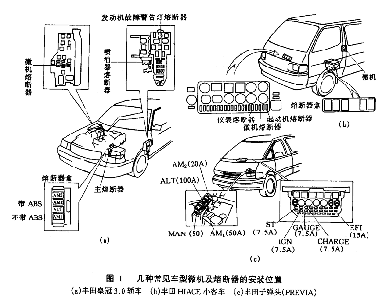 。1)在檢測(cè)之前,數(shù)顯測(cè)振儀應(yīng)先檢查汽車(chē)微機(jī)控制系統(tǒng)及其他電氣系統(tǒng)各熔斷器、熔斷絲及有關(guān)的線(xiàn)束插頭(連接器)是否良好。幾種常見(jiàn)車(chē)型微機(jī)及熔斷器的安裝位置如圖 1所示其他車(chē)型參見(jiàn)維修手冊(cè)。